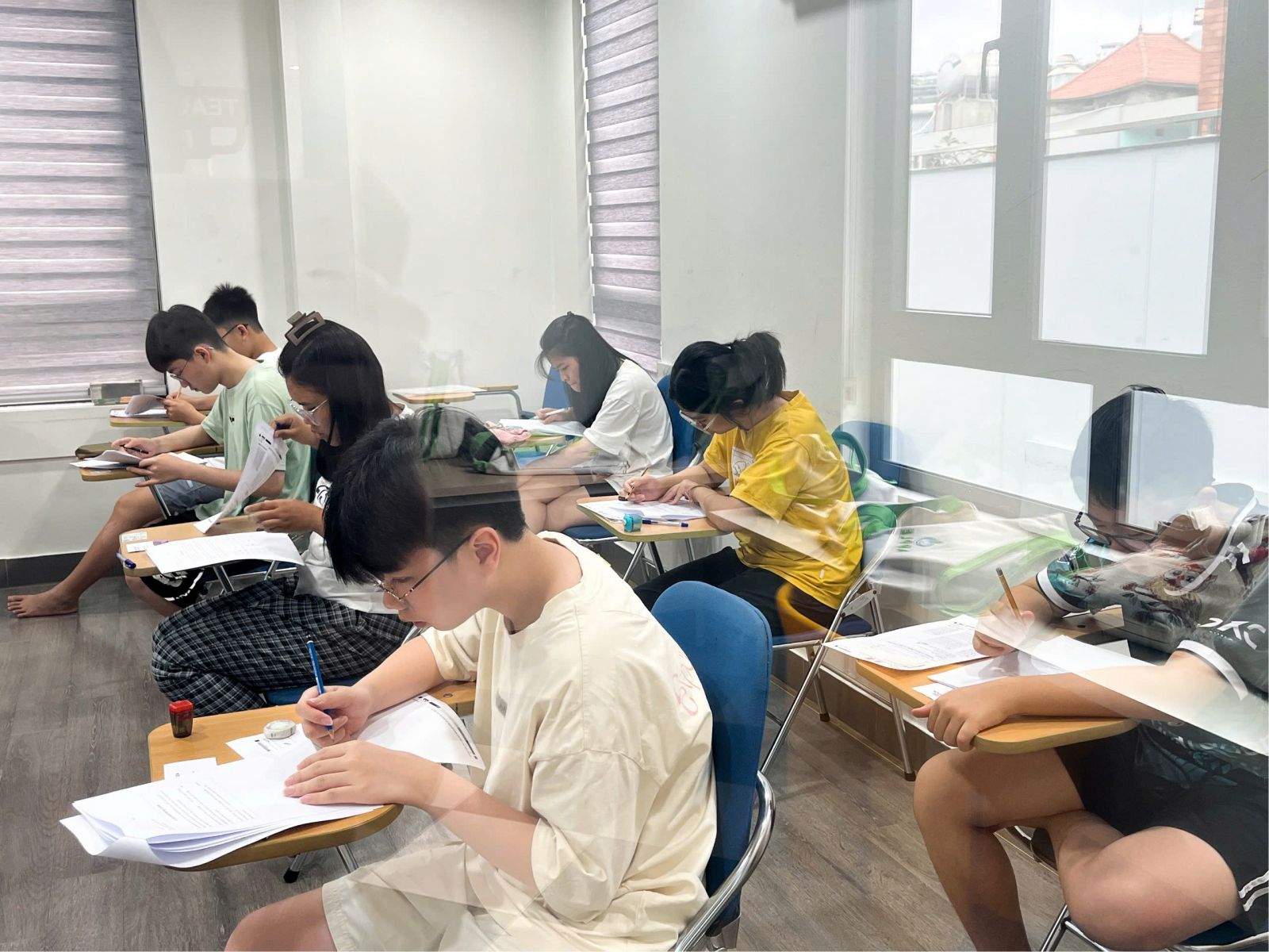 Trong không khí nghiêm túc của buổi thi, dưới sự giám sát của những vị Giám khảo chuyên nghiệp, các em học viên đã hoàn thành Kỹ năng Listening-Reading-Writing rất tập trung, có kỷ luật, đồng thời thể hiện Kỹ năng Speaking một cách bình tĩnh, tự tin.
